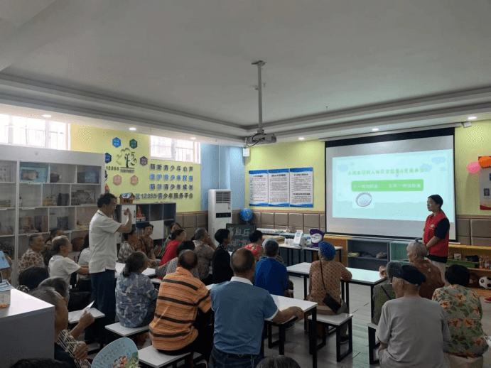 7月4日下午,贵州健康职业学院同心振乡·健康铜行志愿服务队在社区开展宣传健康知识活动。志愿者们通过图文并茂的形式向居民们普及关于高血压慢性病相关知识,社区居民以抢答问题换取积分,用积分兑换生活用品,居民们不仅了解高血压疾病知识,而且调动居民们的积极性。