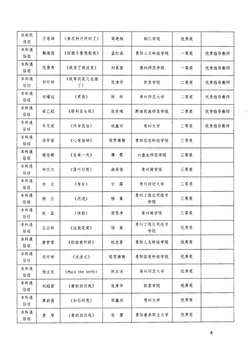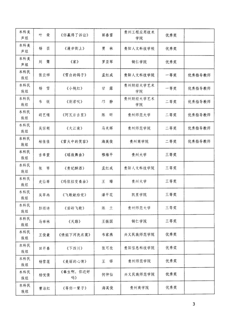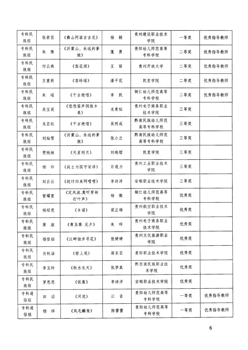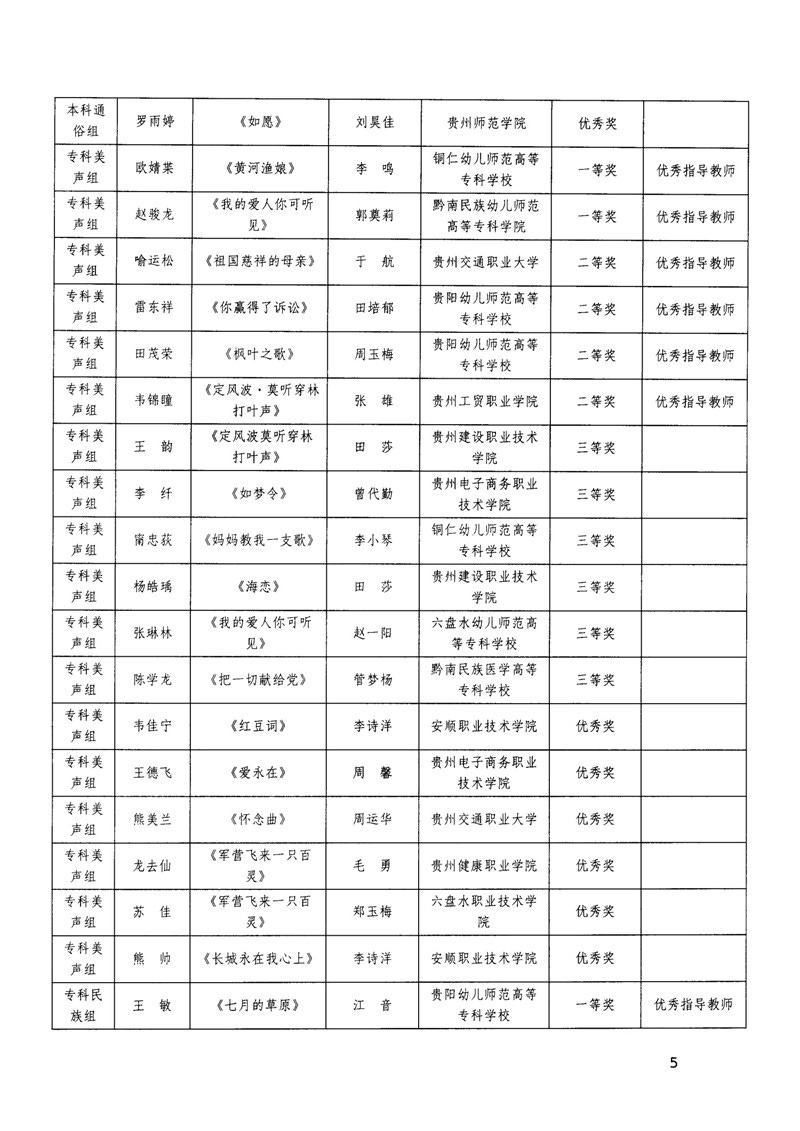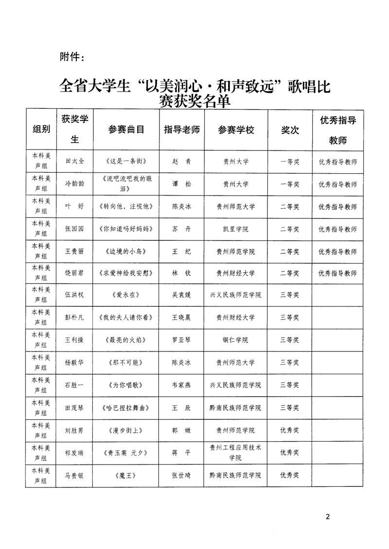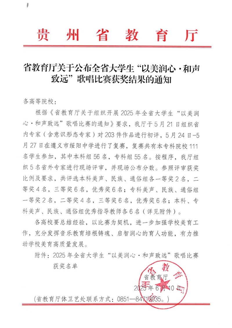 省教育厅关于公布全省大学生“以美润心·和声致远”歌唱比赛获奖结果的通知