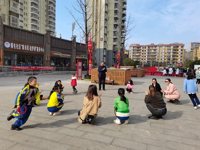“丢手绢丢手绢,轻轻地放在小朋友的后边,大家不要告诉他,快点快点抓住他……”。在社区广场,老师和孩子们玩起了丢手绢的游戏,整个广场充满了欢声笑语。