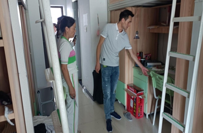 学生处工作人员对学生宿舍进行安全隐患排查现场