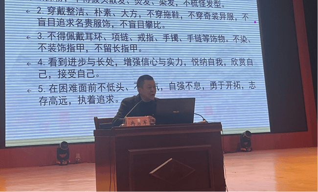 为帮助青年女大学生树立正确的世界观、人生观和价值观,做自尊自爱自重自护自信自强的新时代大学生。11月20日,在学院大礼堂,学院党委学工部部长冉勇军以“自尊 自爱 自重 自护,做一个自信自强的阳光女孩”为主题,开展了一场青春期女生健康安全教育专题讲座,全体专兼职辅导员、在校女学生代表等1000余人到场聆听。