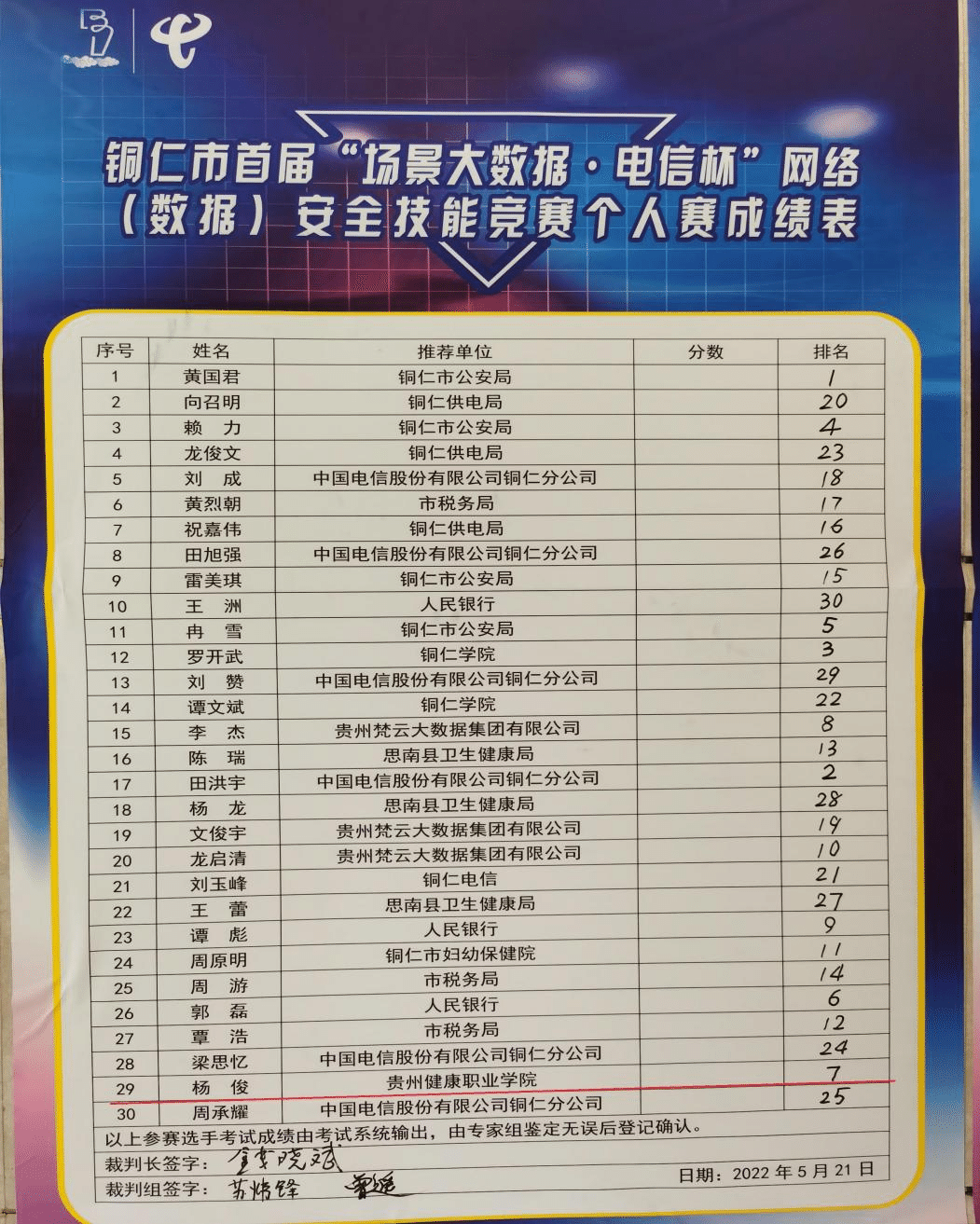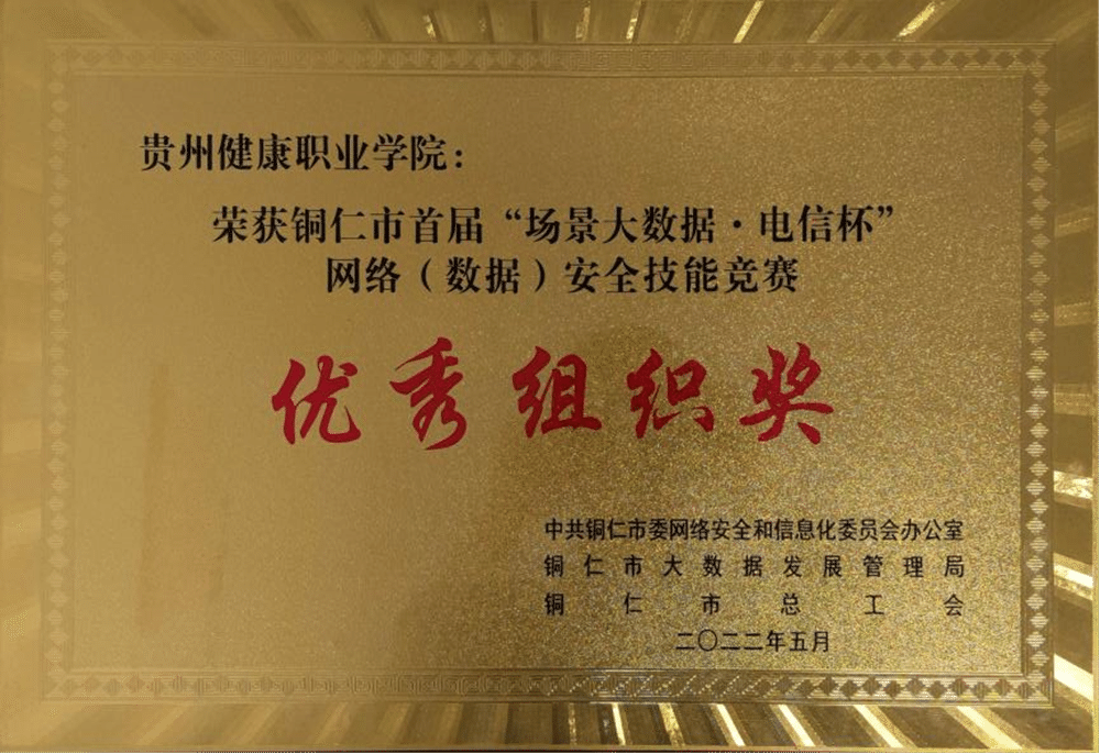 5月25日,铜仁市首届“场景大数据·电信杯”网络(数据)安全技能竞赛颁奖仪式上,我院荣获优秀组织奖。