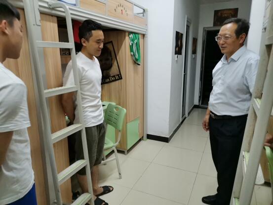 在学生宿舍,李书记与留校学生亲切交谈,详细询问了同学们的生活情况,了解他们接下来即将开始的实习生活和未来打算,鼓励同学们充分利用实习之前这个相对安静的时间,多读书、多思考,为今后的人生之路奠定坚实的基础。目前是汛期,又多雷暴天,李书记叮嘱大家外出时要注意安全,不要晚归,每天把自己的生活轨迹向辅导员汇报。同时嘱咐大家正确对待疫情,要求大家一如既往的按照学院的统一部署,在疫情防控期间,注意开窗通风,保持身体健康,不放松、不泄劲,克服困难,坚定信心,有任何困难随时联系老师。