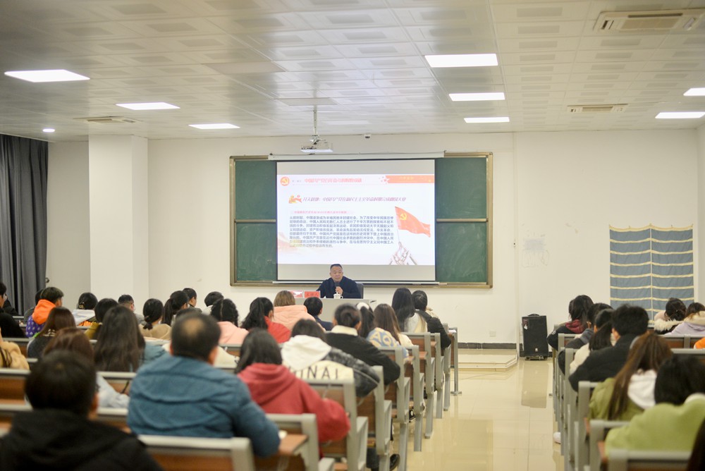 为深入学习贯彻党的十九届六中全会精神,扎实推进党史学习教育,用党的创新理论武装头脑,深刻理解党百年奋斗的历史意义和历史经验的丰富内涵,不断汲取前进的智慧和力量,12月14日,药学系学习宣传贯彻党的十九届六中全会精神专题辅导报告会在9-10-400阶梯教室举行,学院党委委员、工会主席王锡林作专题宣讲,会议由药学系党总支书记田松明主持。全体教师及学生代表参加会议。