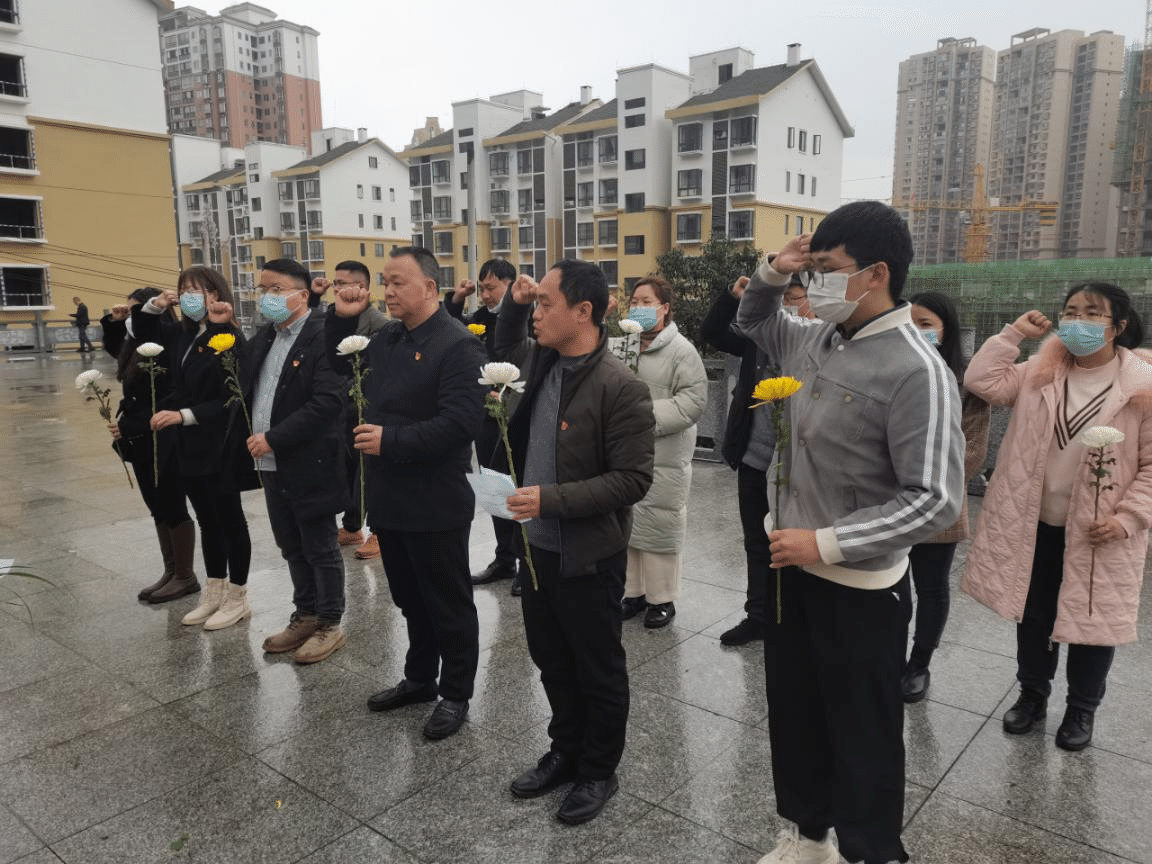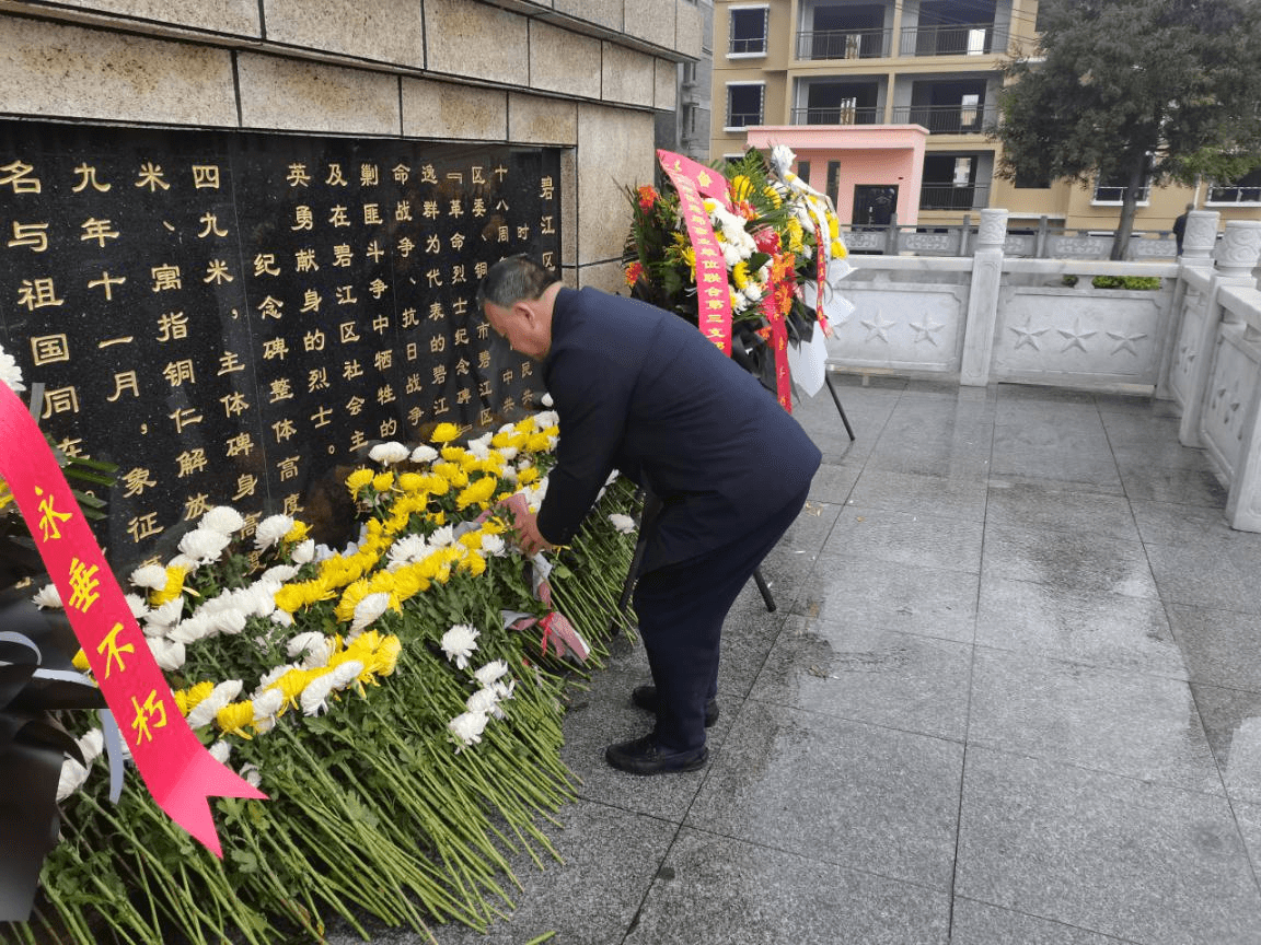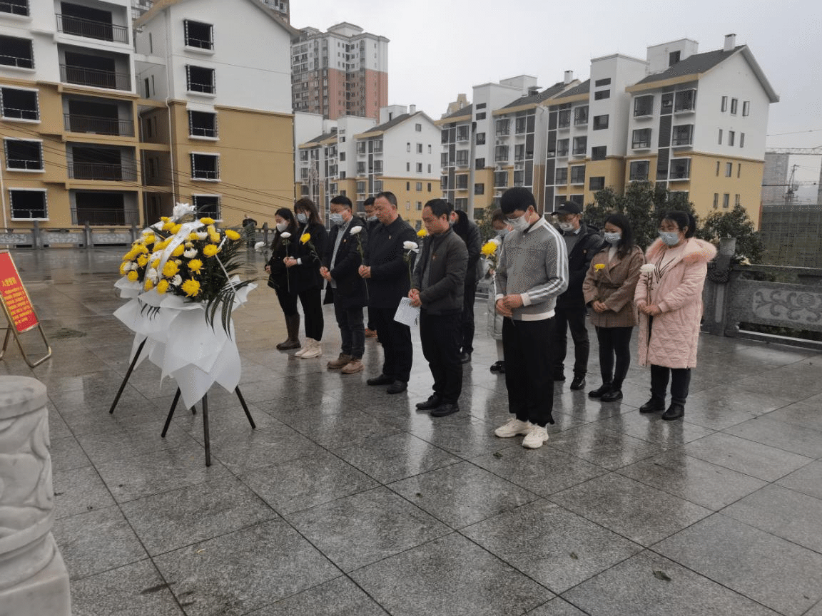当天下午,阴雨朦朦,天地静穆,翠柏静哀,全体同志怀着十分沉重的心情来到烈士纪念碑前,驻足、瞻仰、默哀,支部书记周斌同志神情凝重,缓步上前向革命烈士敬献花篮,仔细整理缎带,缎带上“革命烈士永垂不朽”几个大字寄托着对烈士们的深切缅怀和崇高敬意。其余同志怀着崇敬的心情敬献鲜花,以寄哀思。