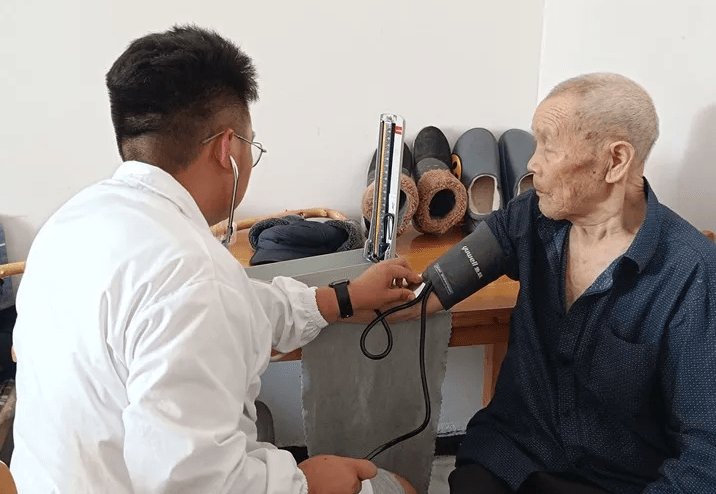 志愿者为老兵量血压
