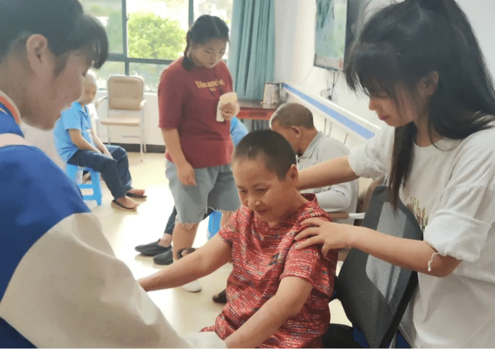 志愿者为老人按摩