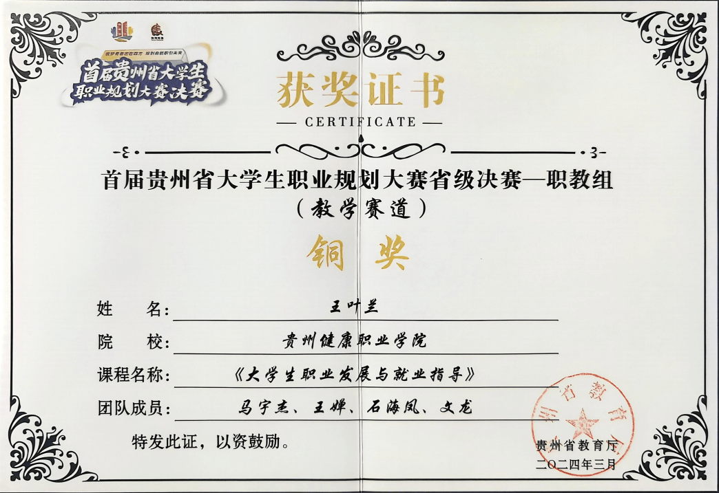 2024年3月王叶兰参加职业规划大赛获奖