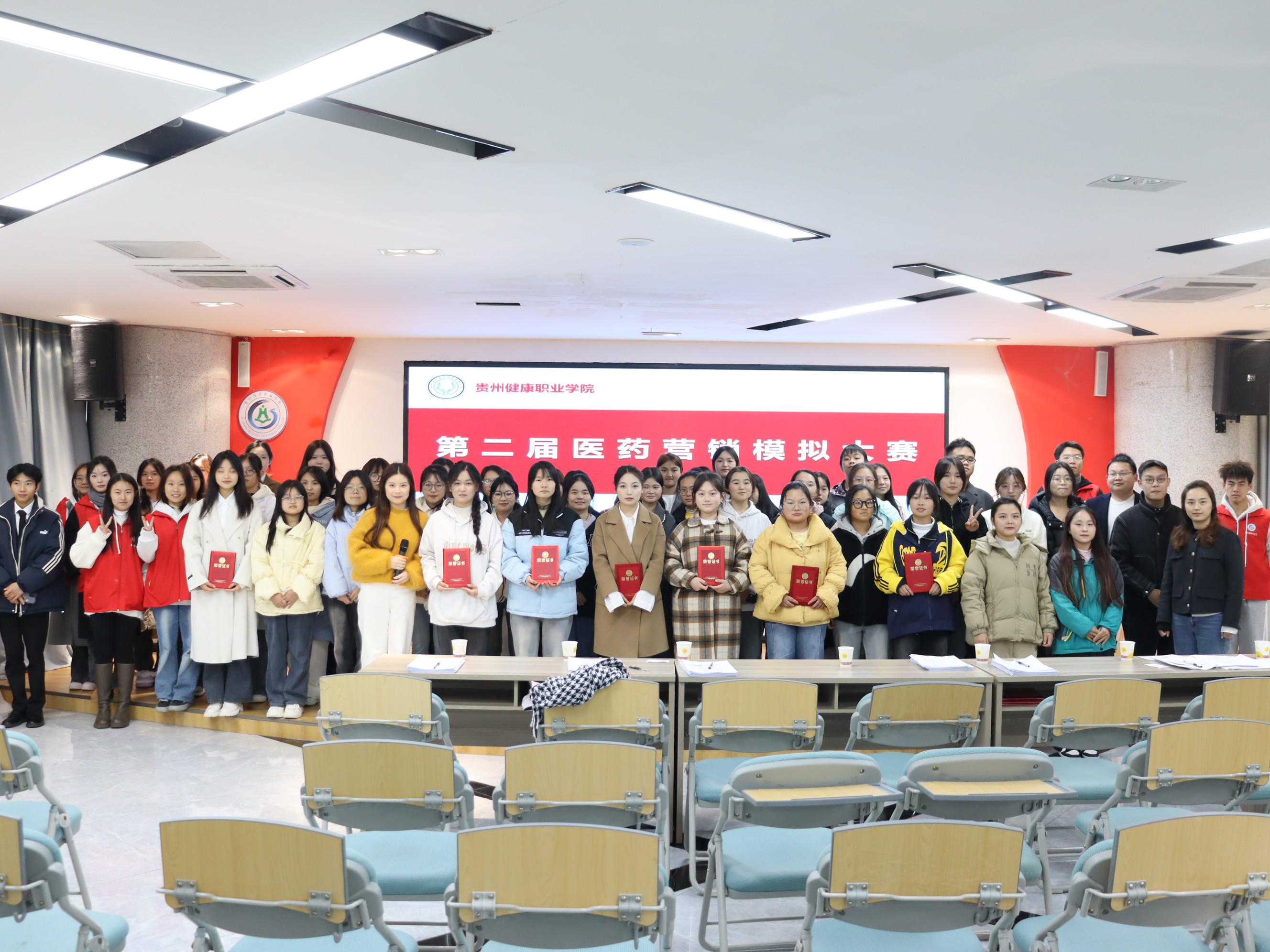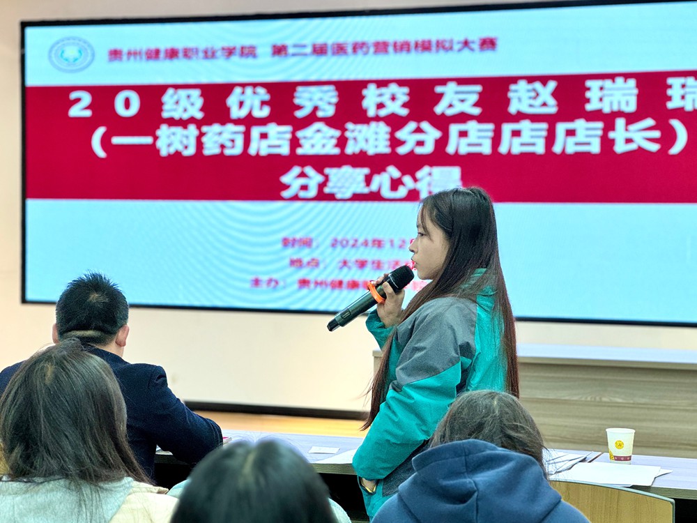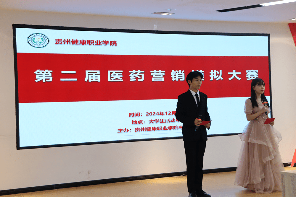 2024年12月4日下午,贵州健康职业学院中医药系第二届医药营销模拟大赛决赛在大学生活动中心成功举办。中医药系办公室主任刘盼盼、专任教师蔡大钊、田芳、李娟、张文壮、20级优秀校友赵瑞瑞出席并担任评委,近100名学生参加。