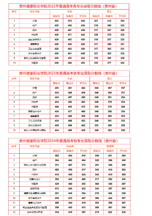 贵州省2022-2024年高考录取分数线