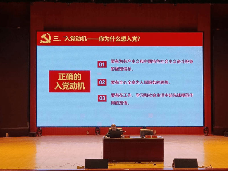 刘春先以《知党史感党恩 端正入党动机 积极向党靠拢》为题给大家作专题讲座。首先,刘春先强调了科学信仰的重要性,科学的信仰是大学生肩负新的历史使命的灵魂,是运用马克思主义的立场、观点和方法发现、分析和解决问题和实现中华民族伟大复兴的中国梦的指导思想。其次,刘春先为同学们详细讲解了中国共产党的历程、性质、宗旨和指导思想,使同学们明白中国共产党是马克思列宁主义同中国工人运动相结合的产物。希望同学们牢记党的性质、全心全意为人民服务的根本宗旨和新时期党的指导思想。最后,刘春先为大家解读了入党程序、发展党员的标准等内容,希望同学们努力学习文化知识,提升学习能力,积极参与丰富多彩的校园文化活动,践行为人民服务的宗旨,从身边点滴做起,争取早日入党。
