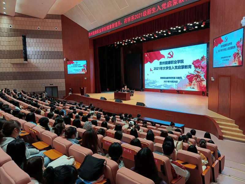 为加强2021级新生思想政治教育,增进学生对中国共产党的基本知识的理解和掌握,引导大一新生积极主动向党组织靠拢,进一步为我们党发现和培养更多的优秀学生党员。健康管理系和药学系于10月20日在学院大礼堂举行了新生入党启蒙教育大会。健康管理系党总支书记夏国文主持会议,院组织人事部党建办主任陈礼胜、思想政治教学研究部办公室主任刘春先、健康管理系和药学系教师代表、2021级学生团员及学生入党积极分子,共800余人参加大会。