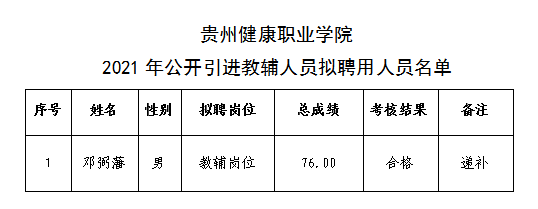 贵州健康职业学院2021年公开引进教辅人员拟聘用人员公示